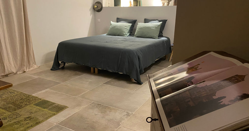 Les Magnarelles is a spacious, cosy and inviting suite. The atmosphere is soft and soothing, and the large bed is dressed in natural-toned linen sheets for absolute comfort.